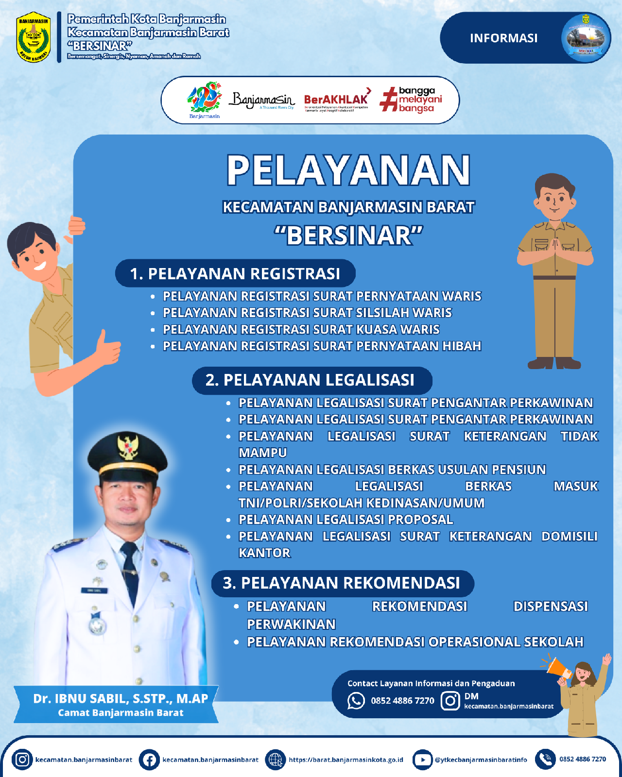 Berdasarkan Surat Keputusan Camat Banjarmasin Barat Nomor 73 Tahun 2024 Tentang Perubahan Keputusan Camat Banjarmasin Barat Nomor 54 Tahun 2024 Tentang Standar Pelayanan Kecamatan dan Kelurahan di Kecamatan Banjarmasin Barat Kota Banjarmasin